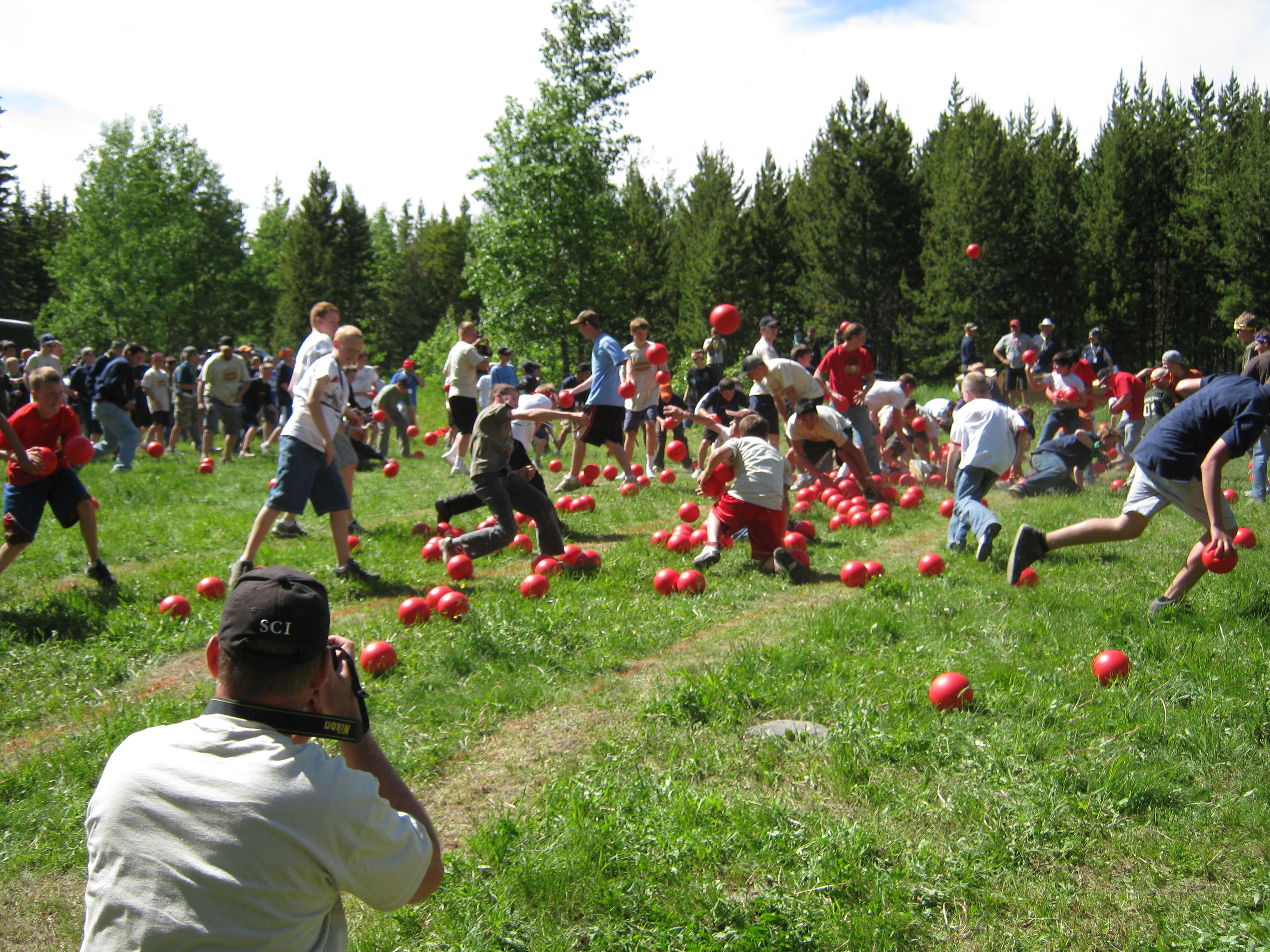 Later we all got together for the largest dodge ball event I ever saw.
