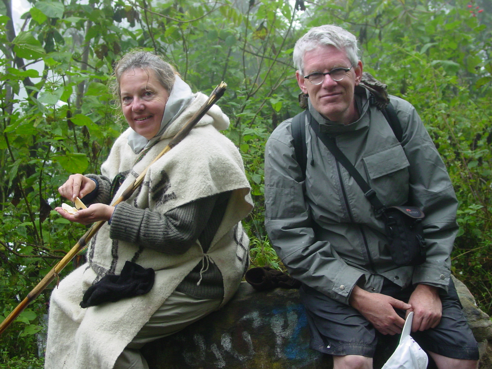 The trek from the village to the top of “Agua” is approx 5.5 miles with an altitude gain of 5500’. The locals who work on the volcano seemingly make the trek without effort; carrying very heavy loads upon their backs. The men use a device called a “mecapal” which bears weight using the forehead. As we were making our climb, a young fellow came up out of the jungle with a very large load of wood on his back. After stopping and talking to him for a time, I asked him if he would allow me to try and lift the load he was carrying. He was very obliging but I was not able to budge the weight off of the ground!! He got a chuckle out of my attempt to do so.