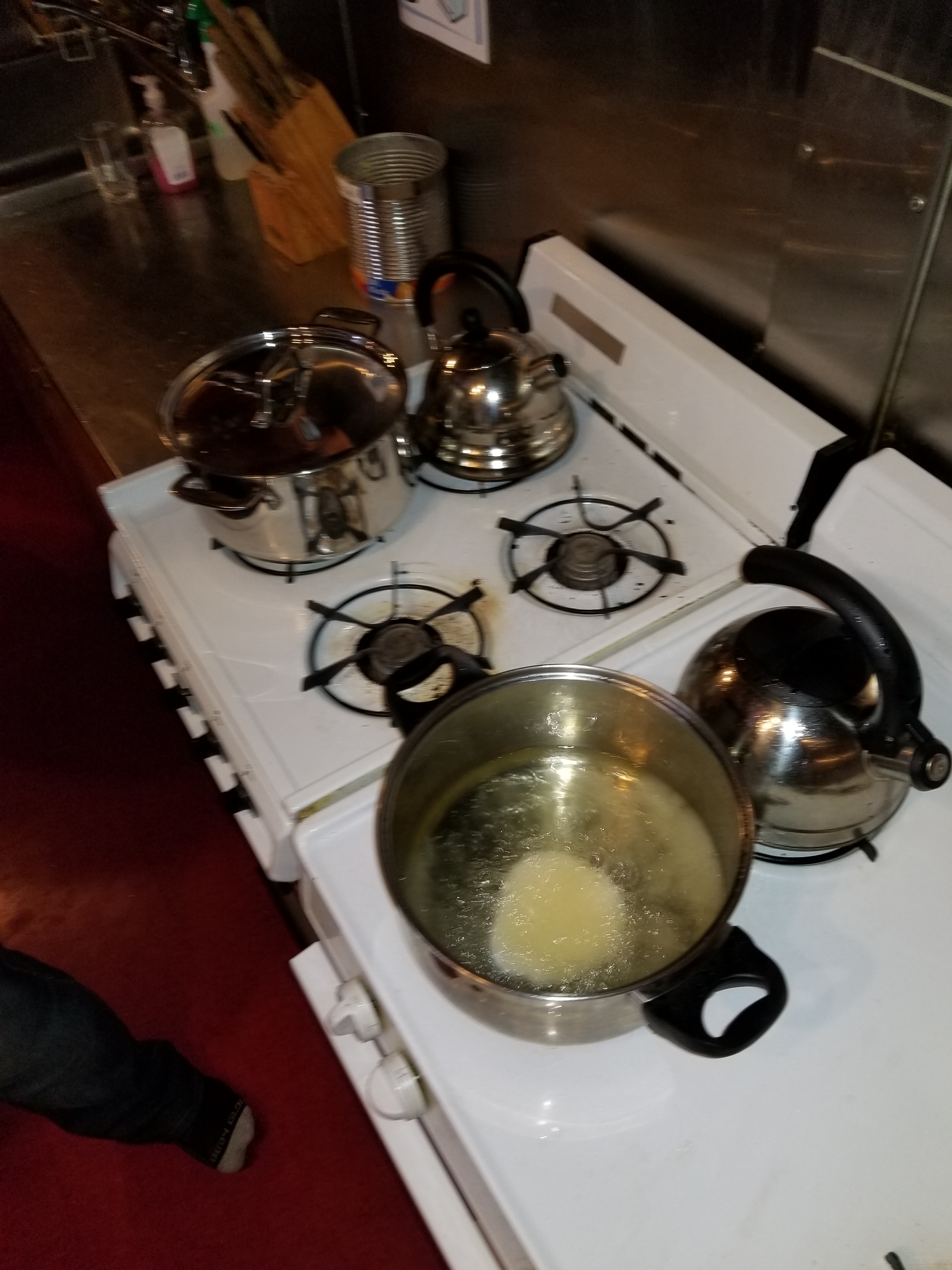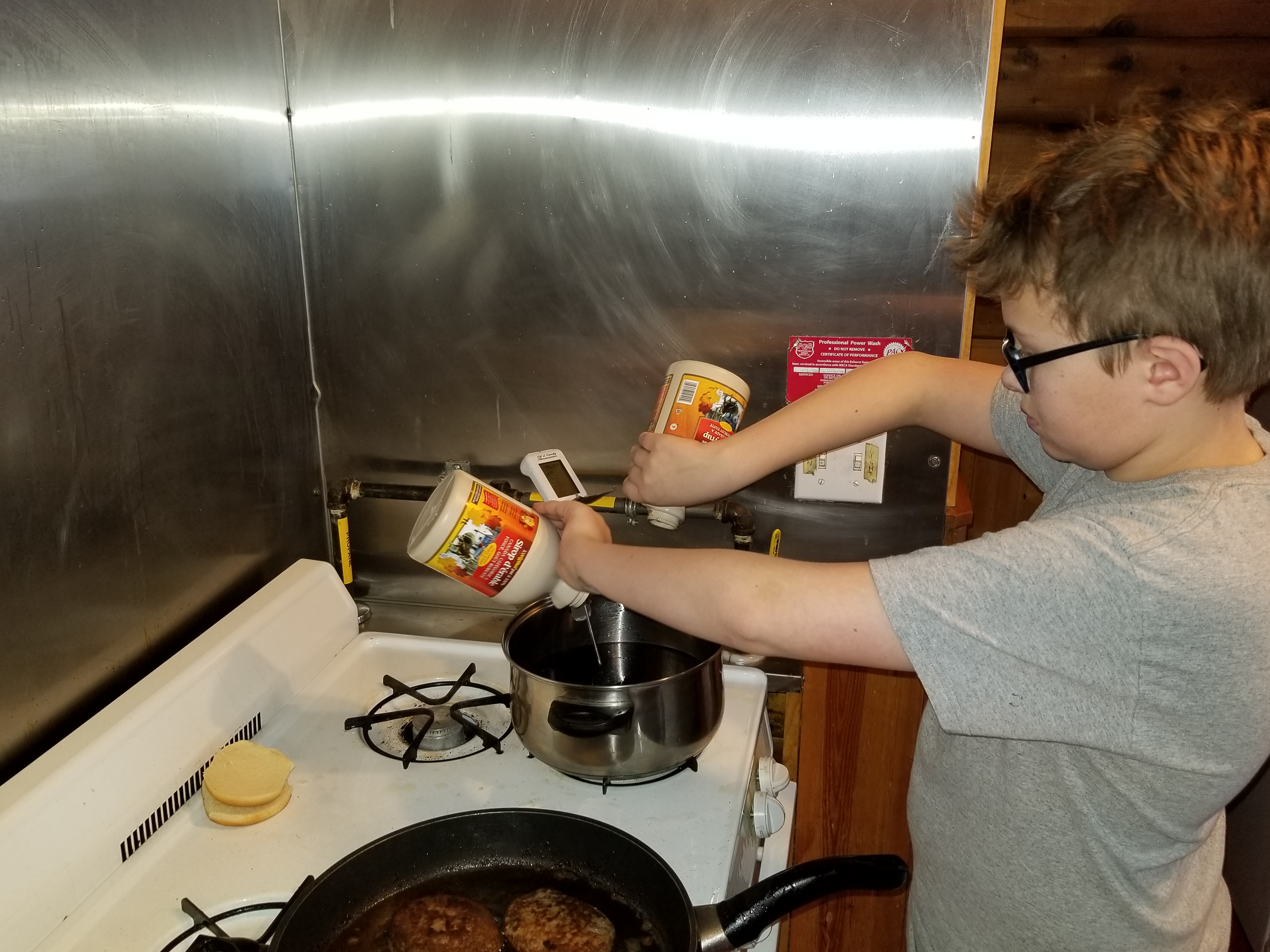 Dump in the Maple syrup, cook to soft-ball. |