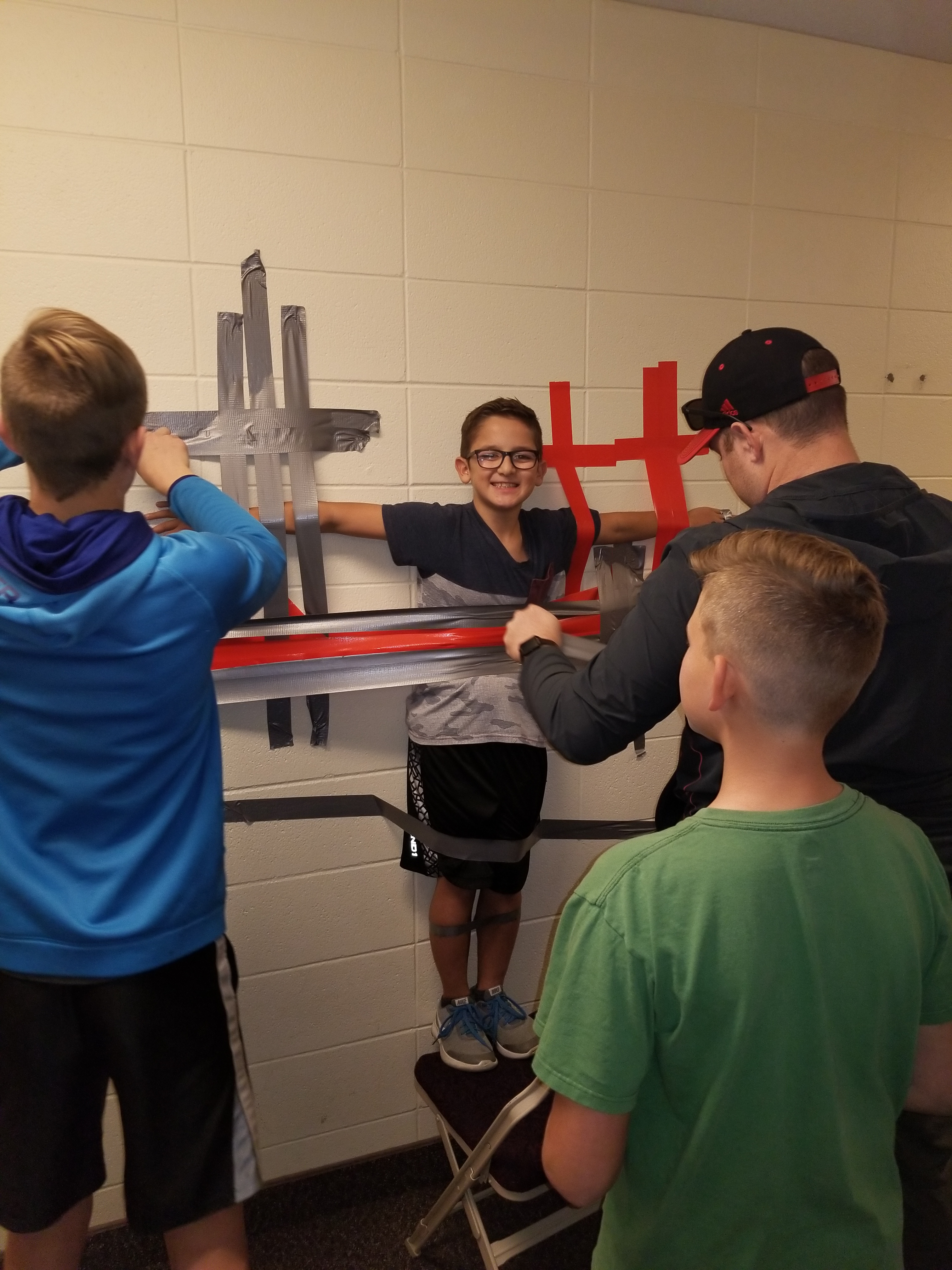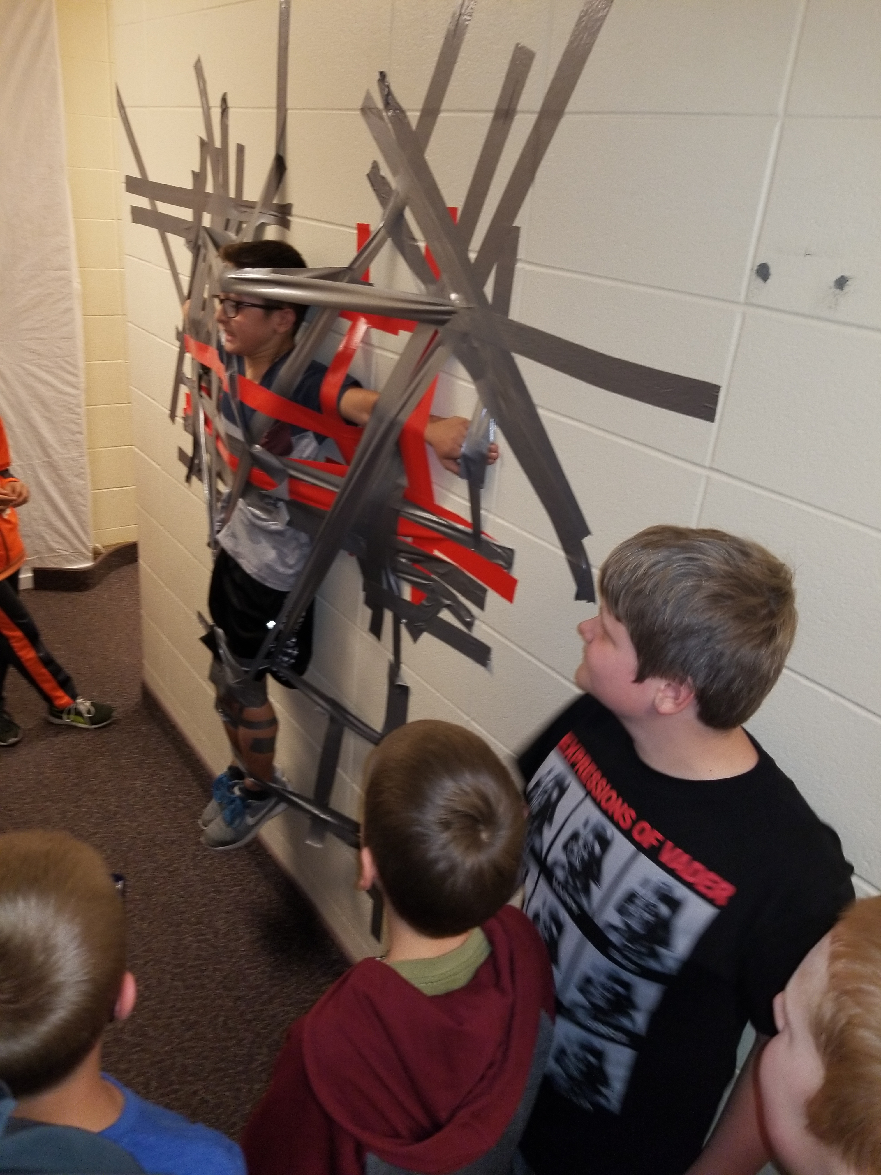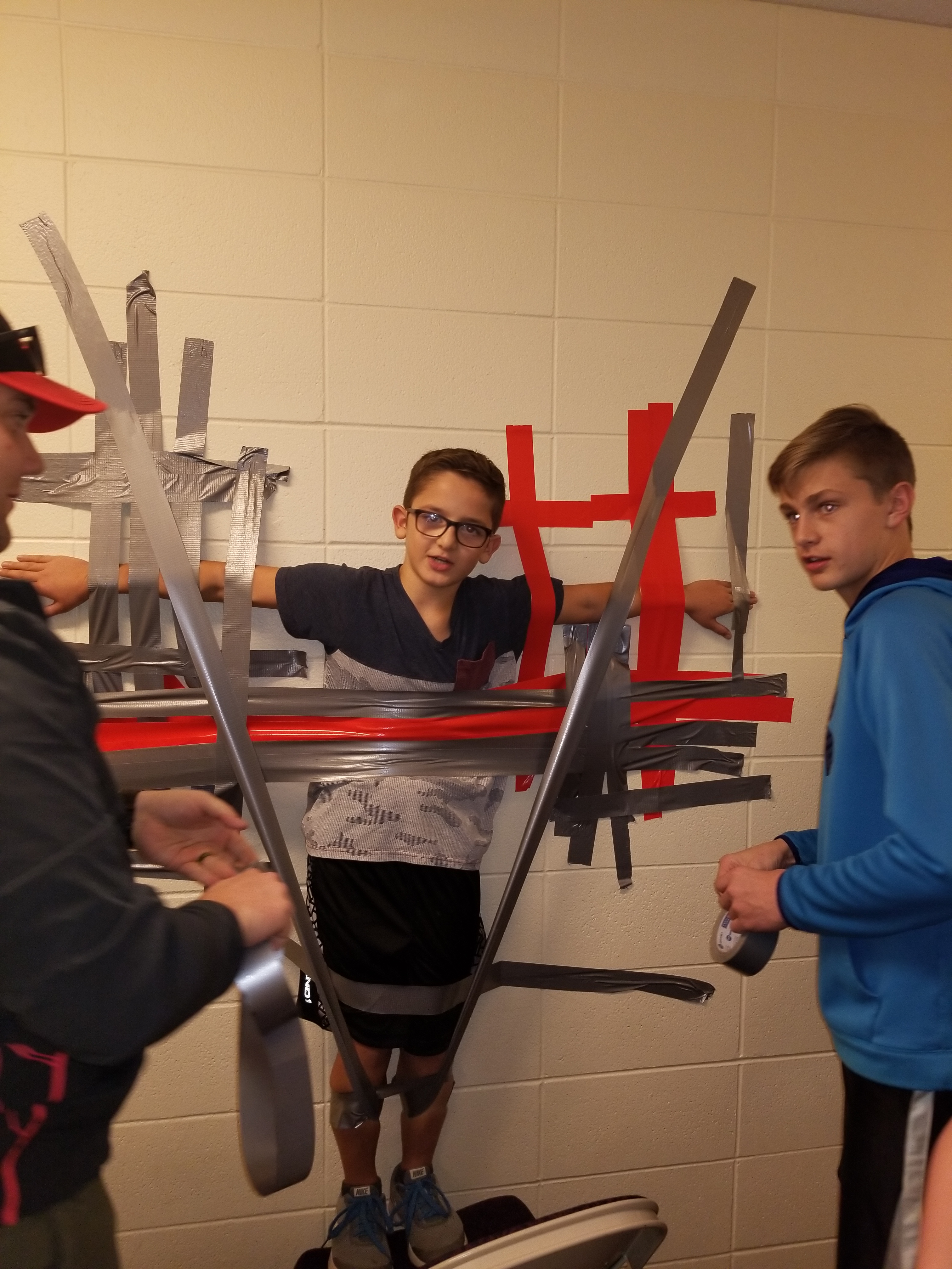 Things you can also do when you have a lot of tape. He is the lightest guy