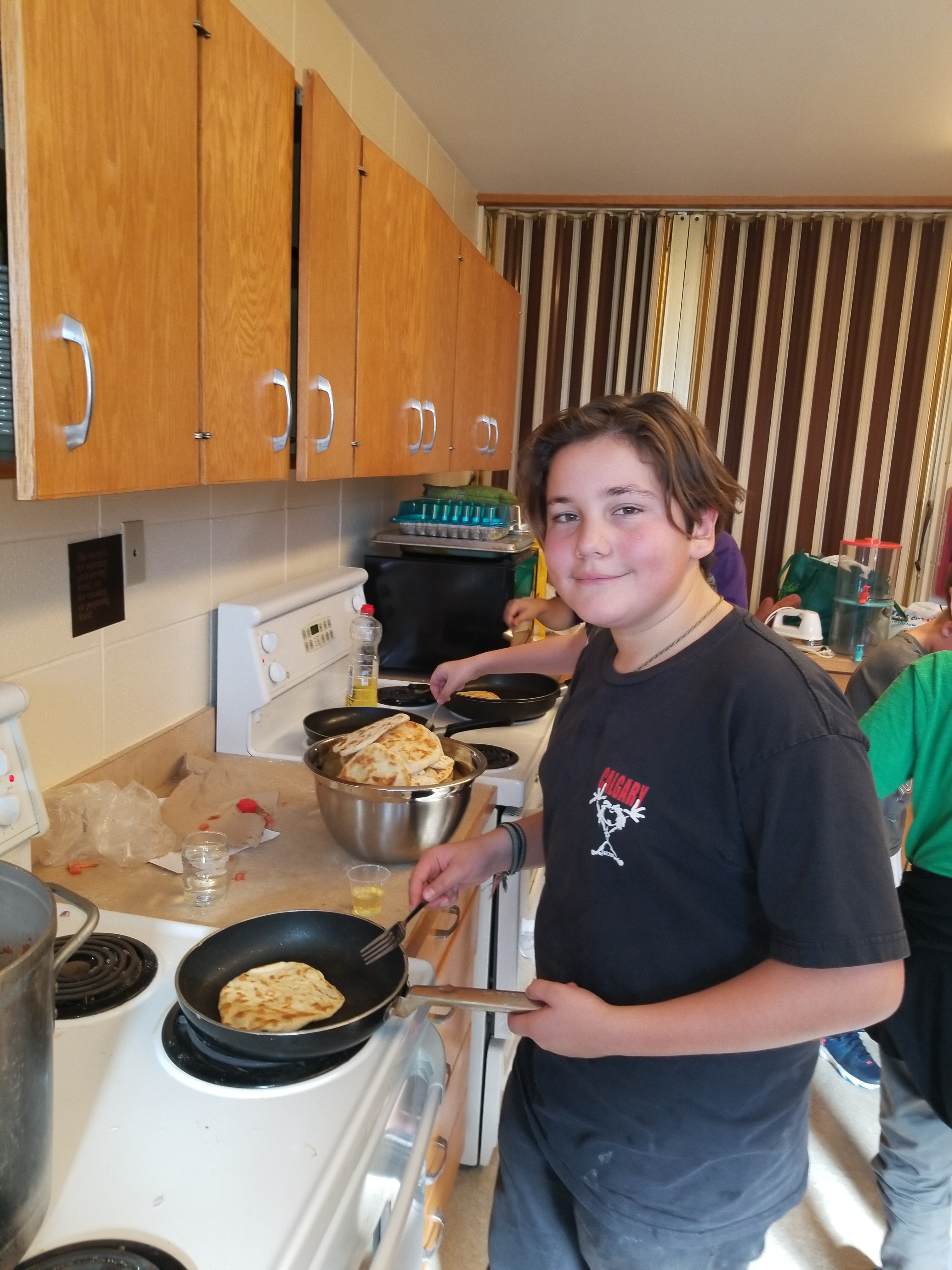 Keep that meat sauce simmering now. Veggie cutting crew is almost