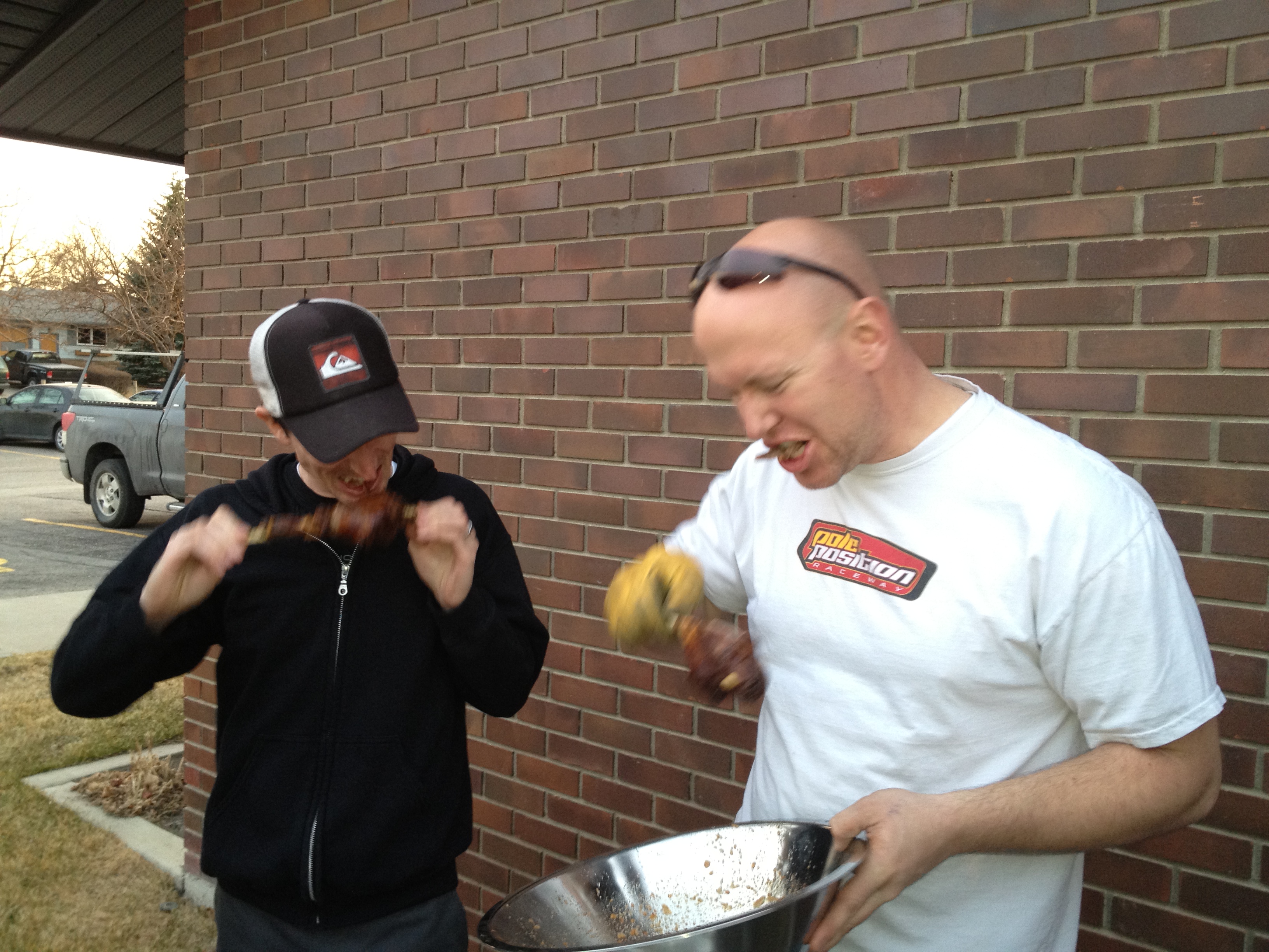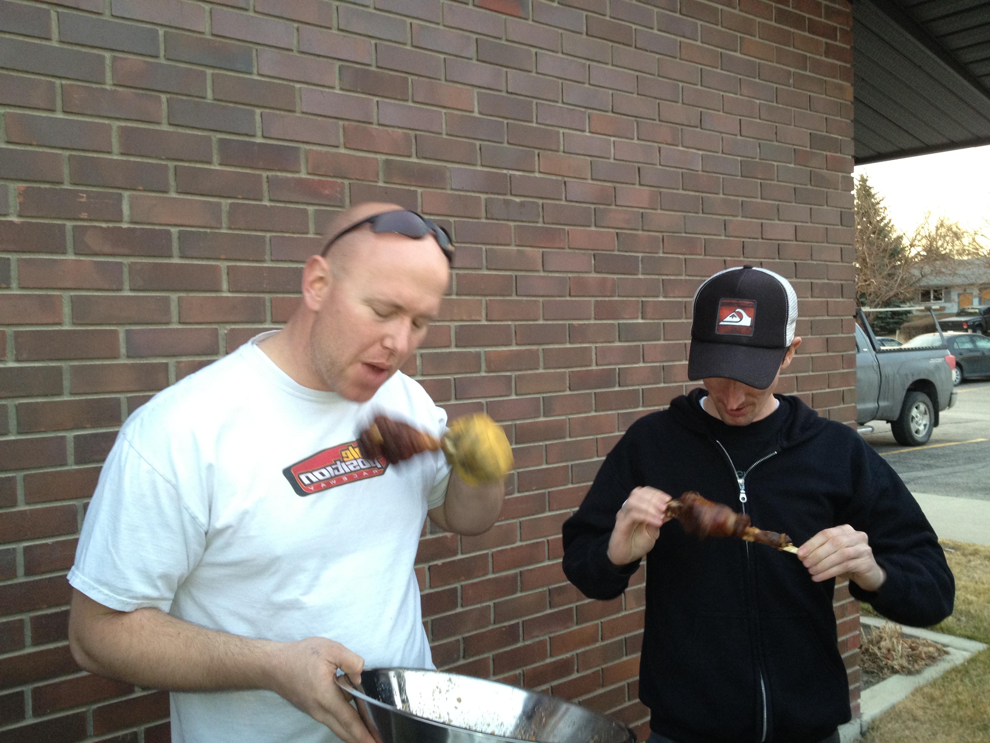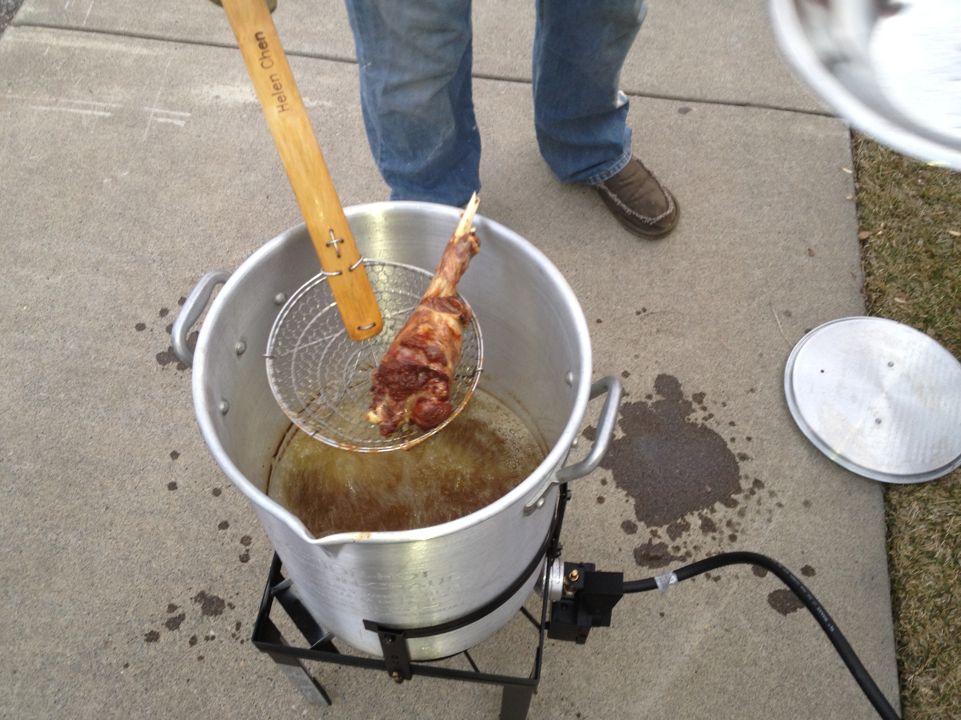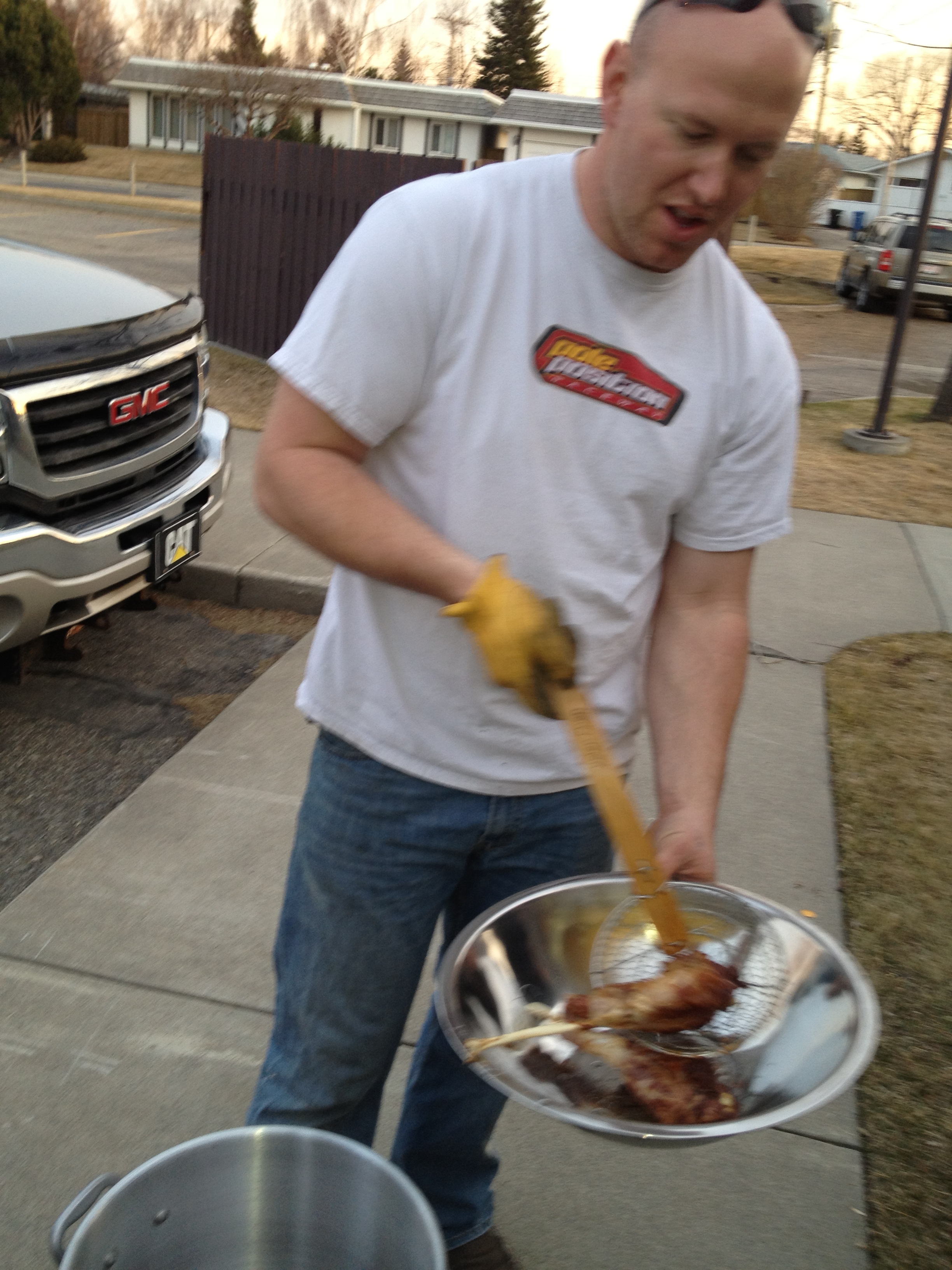Boys were asked to bring a pack of chicken wings and their favorite spices and sauces. We got one of those large propane turkey fryers. Remember to follow those safety instruction! Appetites were high as the oil was heating. Plan was to fry first spice up after.